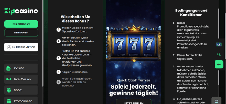 | 🎁 Angebot | Zip Casino Quick Cash Turnier |