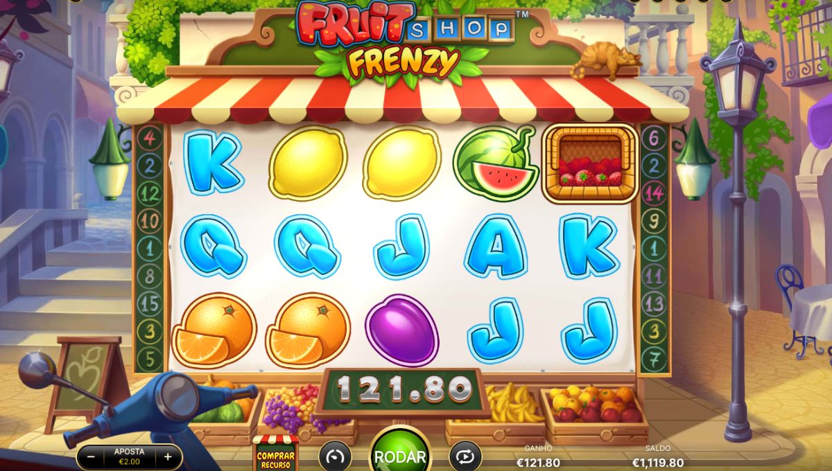 Fruit Shop Frenzy, também da NetEnt, traz uma versão mais simplificada e direta do clássico Fruit Shop. Com 5 rolos e 3 linhas, este jogo de caça-níqueis oferece 20 linhas de pagamento e um RTP de 96.01%. A volatilidade média é ideal para jogadores que preferem uma experiência equilibrada entre riscos e recompensas.
