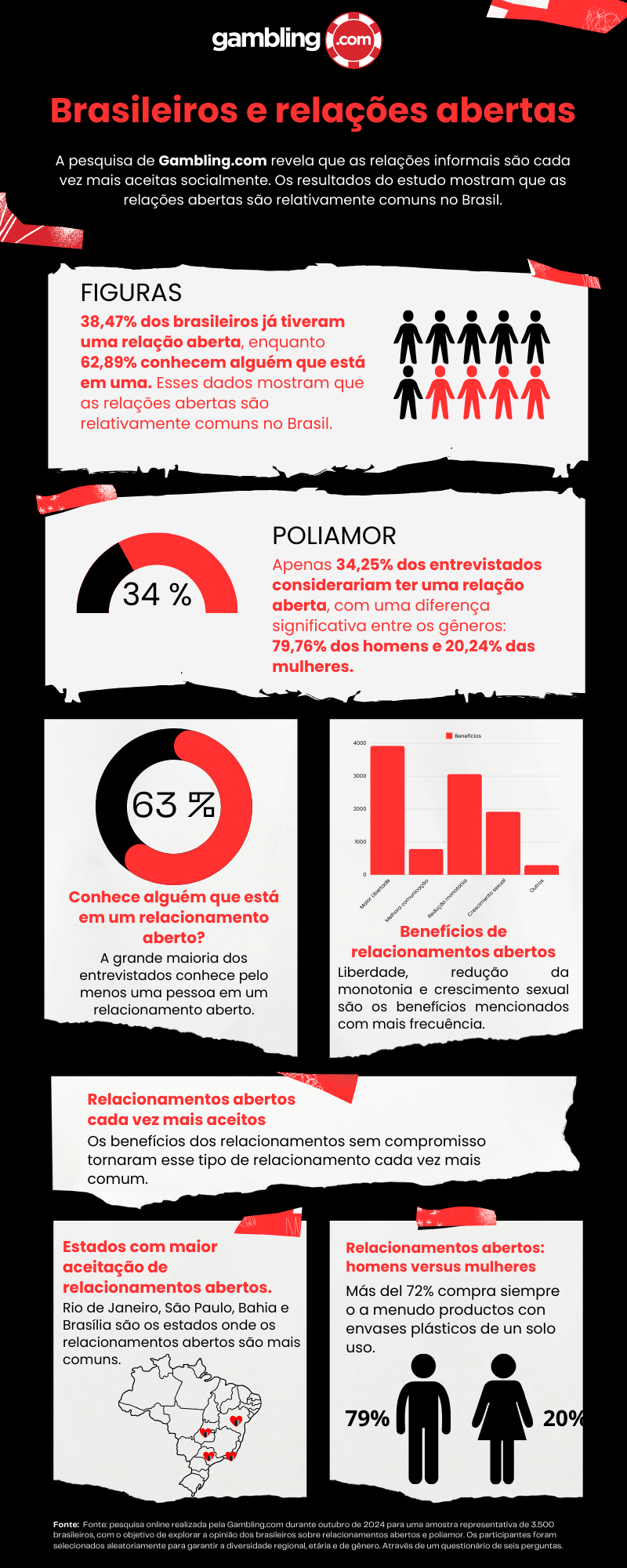 São Paulo, Novembro de 2024. Em um país conhecido por sua diversidade cultural e social, os relacionamentos pessoais também refletem essa variedade. Um estudo recente realizado pela Gambling.com, a principal autoridade independente sobre jogos de azar online no Brasil, lançou luz sobre as opiniões dos brasileiros em relação às relações abertas. A pesquisa, que incluiu mais de 3.500 participantes de diferentes estados do país, oferece uma visão detalhada de como esses relacionamentos são percebidos na sociedade brasileira.