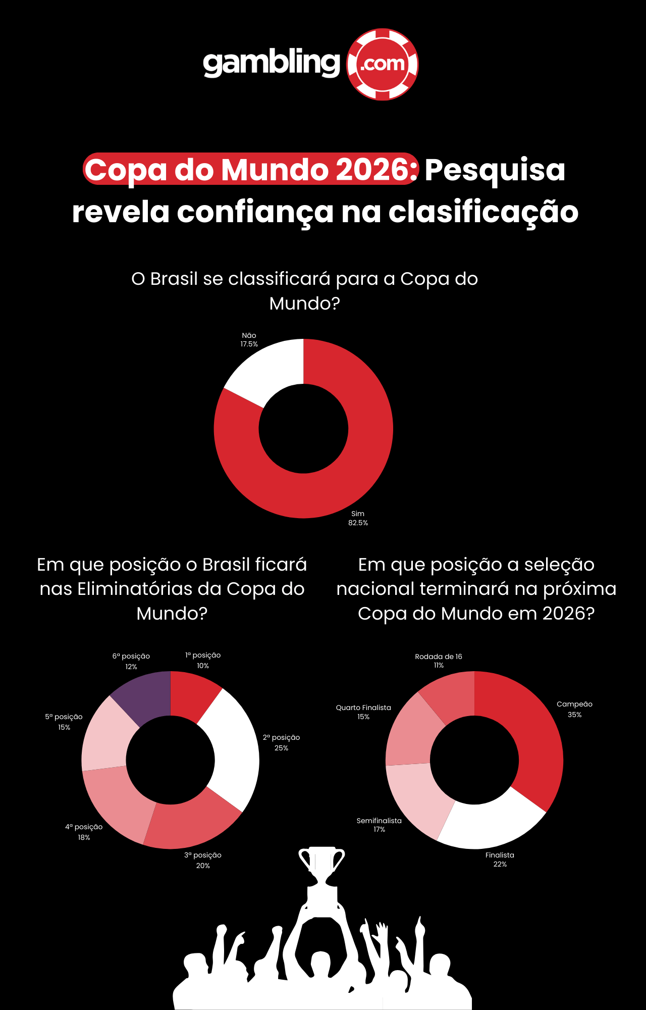 - A pesquisa da Gambling.com mostra que 82,60% dos brasileiros confiam na classificação do Brasil para a Copa do Mundo.