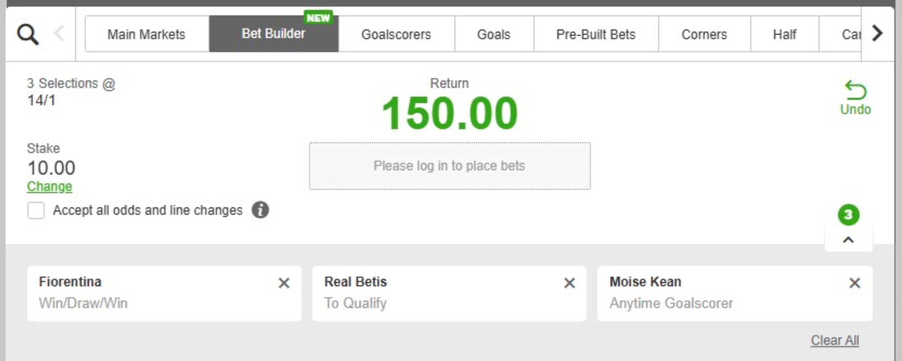 Note that the same-game parlay at Betway is called a 'Bet Builder', so wherever you see this icon on the site, you can place an SGP.