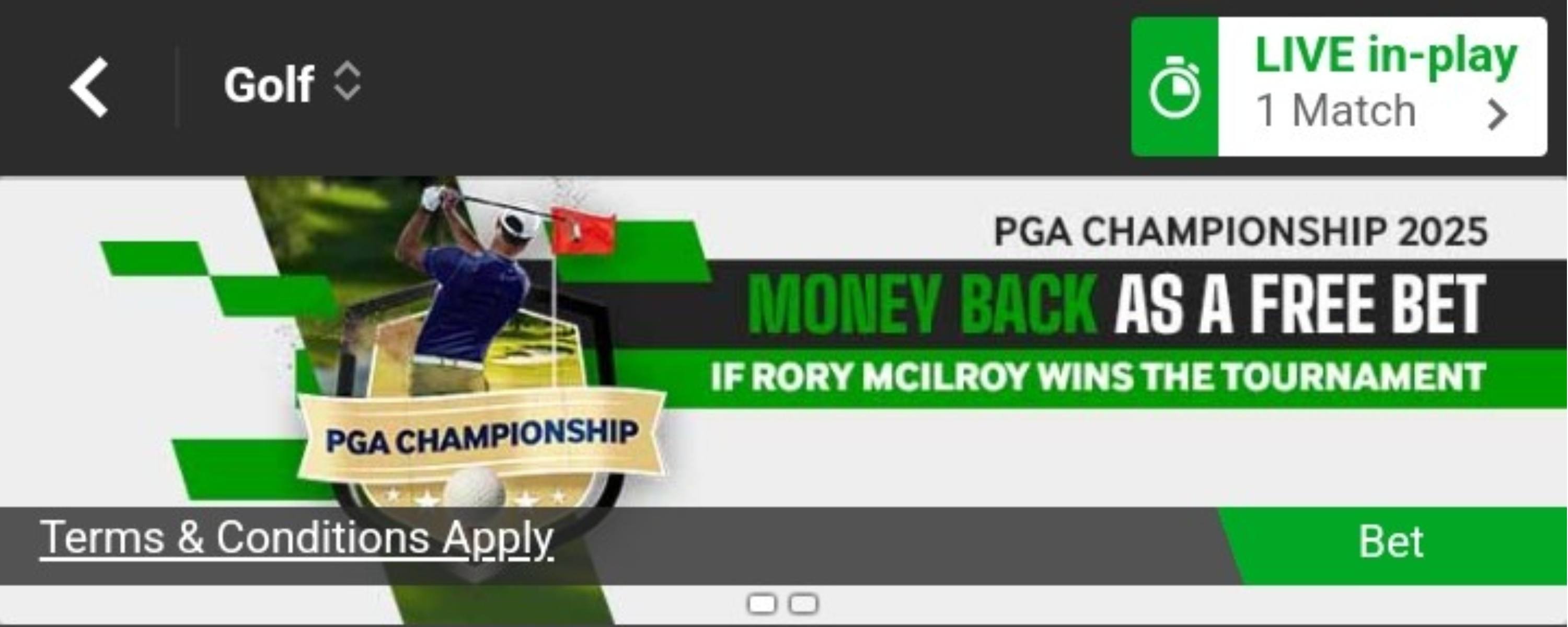 Betway has a broad range of markets for the golf tournaments it covers, although I did notice LIV Golf odds aren't available, which is a bit of a negative.