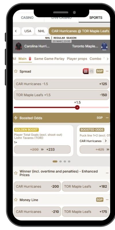 This is a long-established brand with roots in the UK, but it delivers plenty for sports bettors in Alberta with a $500 welcome offer and lots of hockey price boosts to claim after signing up.