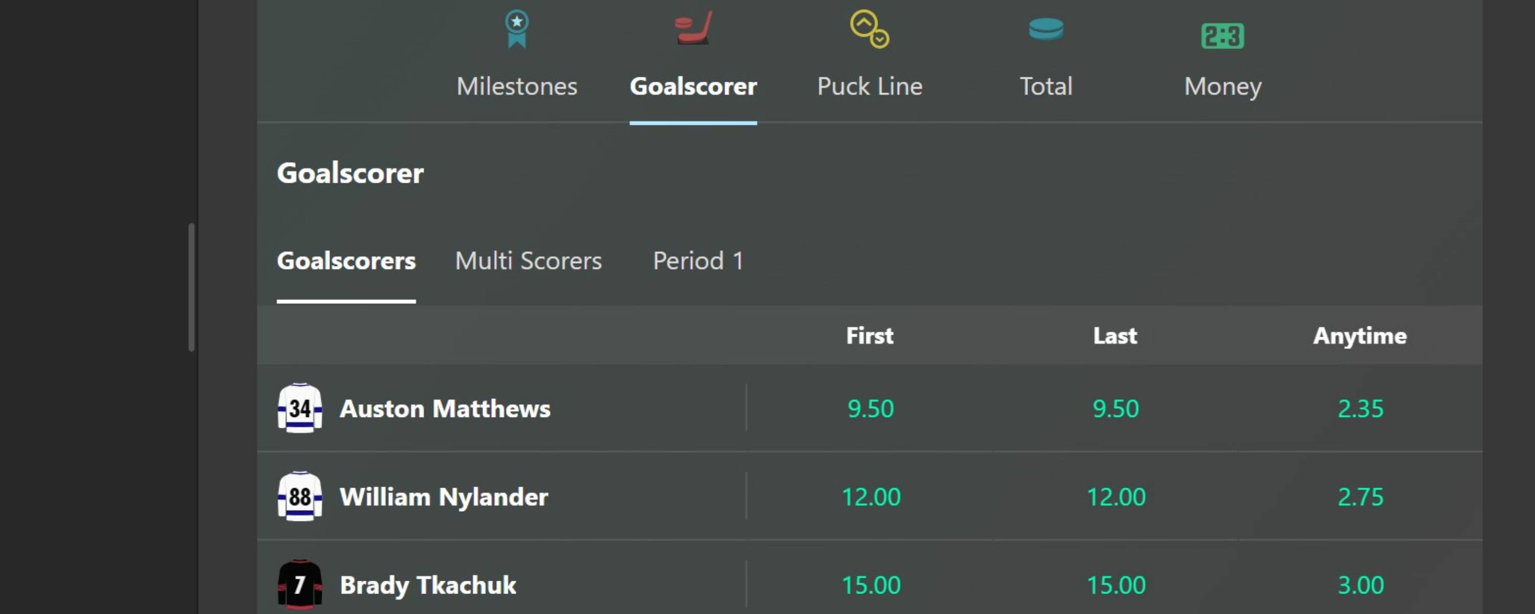 For example, a playoff game between the Maple Leafs and Senators came with 140 pre-game lines when I tested the site.