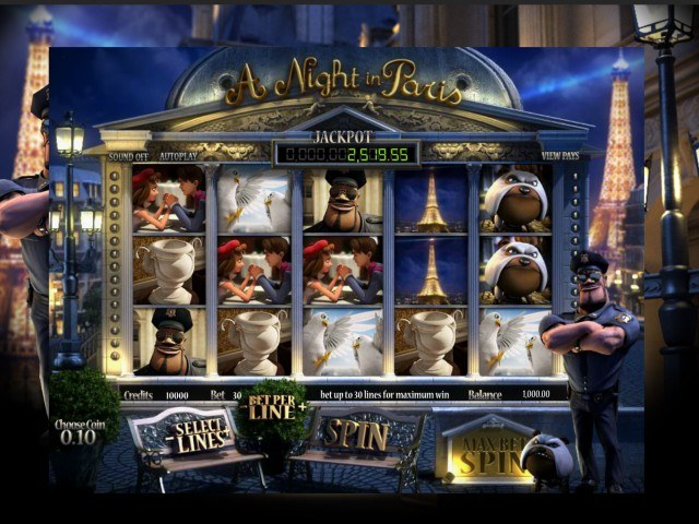 Step into the shady side of the City of Lights with the A Night in Paris slot by Betsoft. This 3D slot transports you into the shoes of master thief Jacques as he hunts for museum treasures and big wins. With 5 reels and 30 paylines, this cinematic game offers payouts up to 45,000 coins (progressive jackpot excluded).