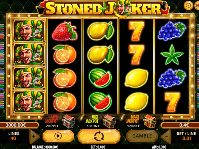 The Stoned Joker slot gives you full control over your bets. You can choose how many paylines to activate and set your stake per line. Bets start at just 0.01 credits for a single line, up to a maximum of 40 credits when all lines are active at 1 credit per line.