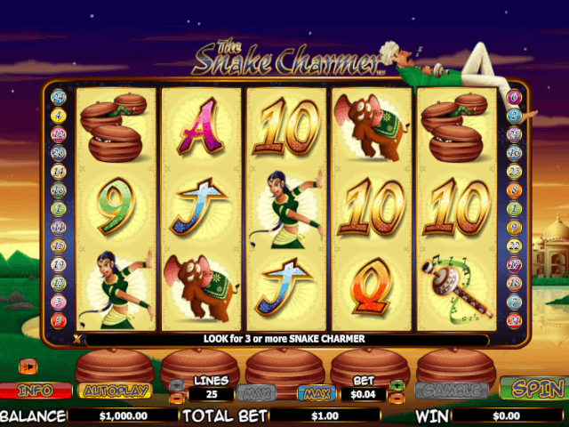The Snake Charmer online slot is built in HTML5 and runs smoothly on desktop and mobile (iOS, Android, Windows). The reels sit in a field before a temple backdrop. Below the reels, you’ll find: