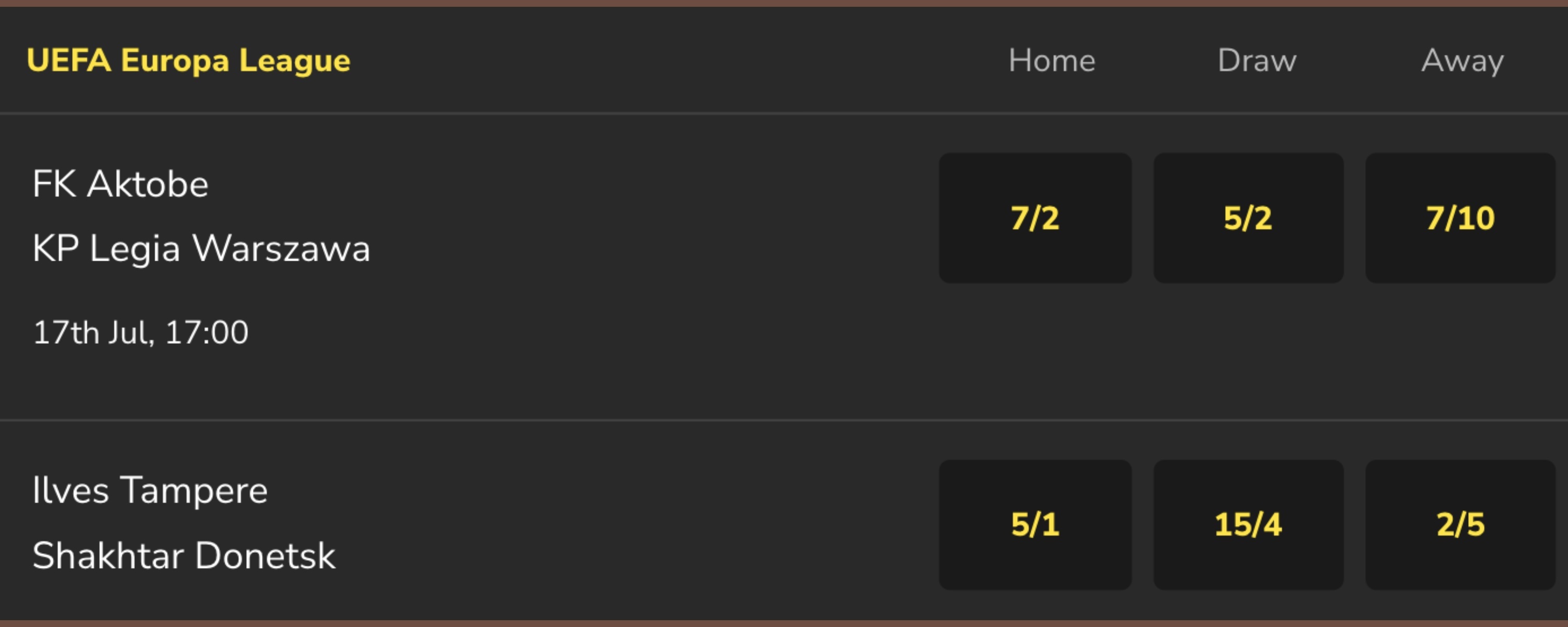 However, there's no search bar to search for teams or players and quickly find your odds, which feels like a bit of an oversight.