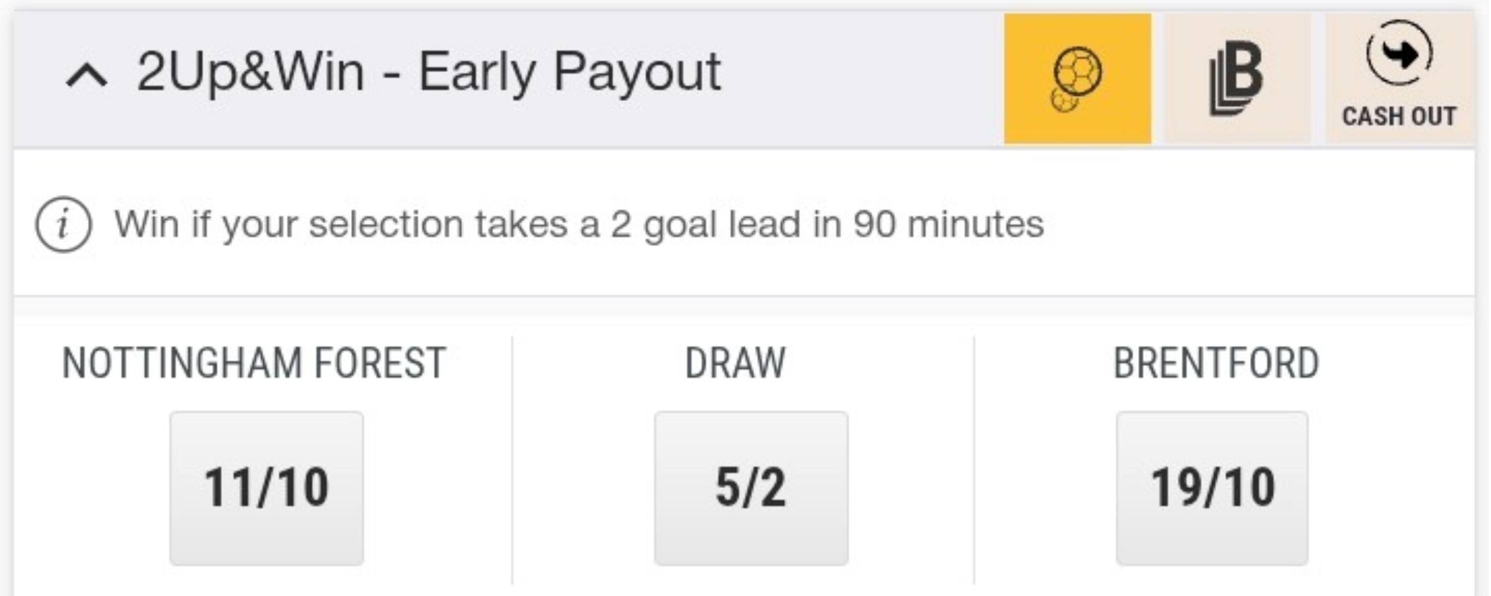 Like BoyleSports and bet365, Ladbrokes pays match winner bets out early if your team goes two goals ahead.