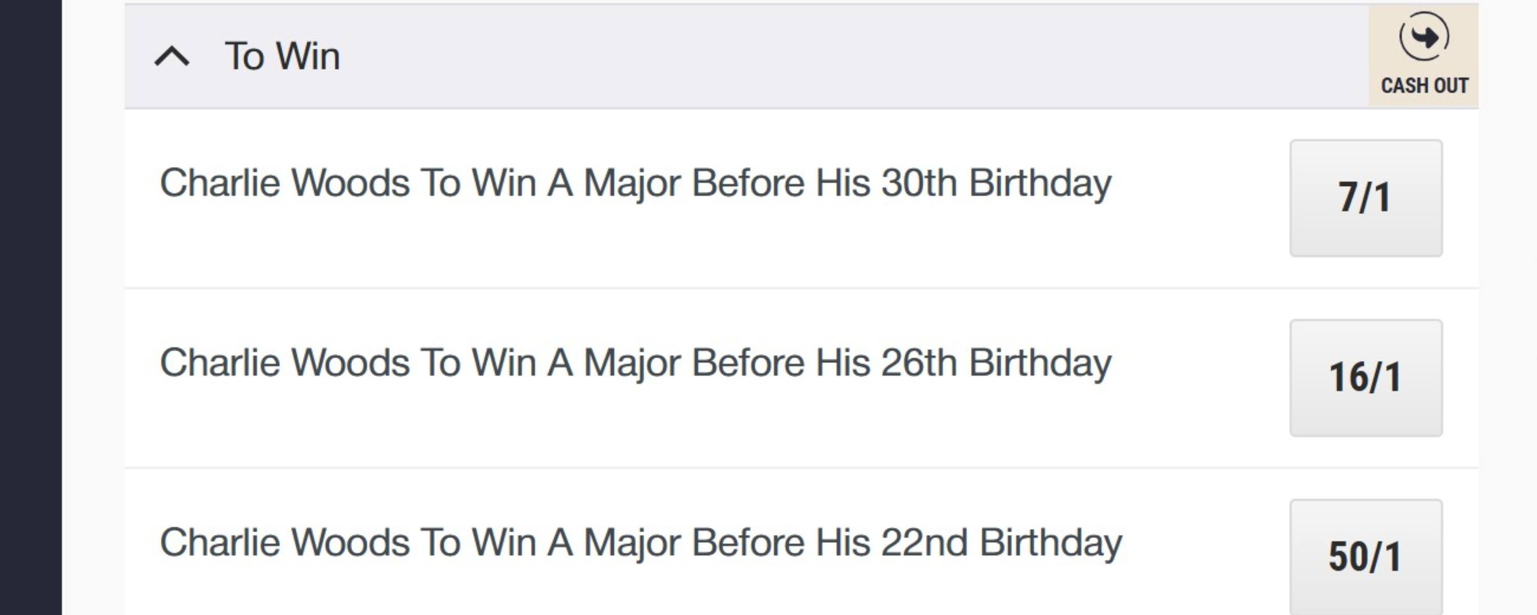There's also a range of special markets available year-round, where I can bet on performances over the course of a season (Rory McIlroy over/under major wins, for example).