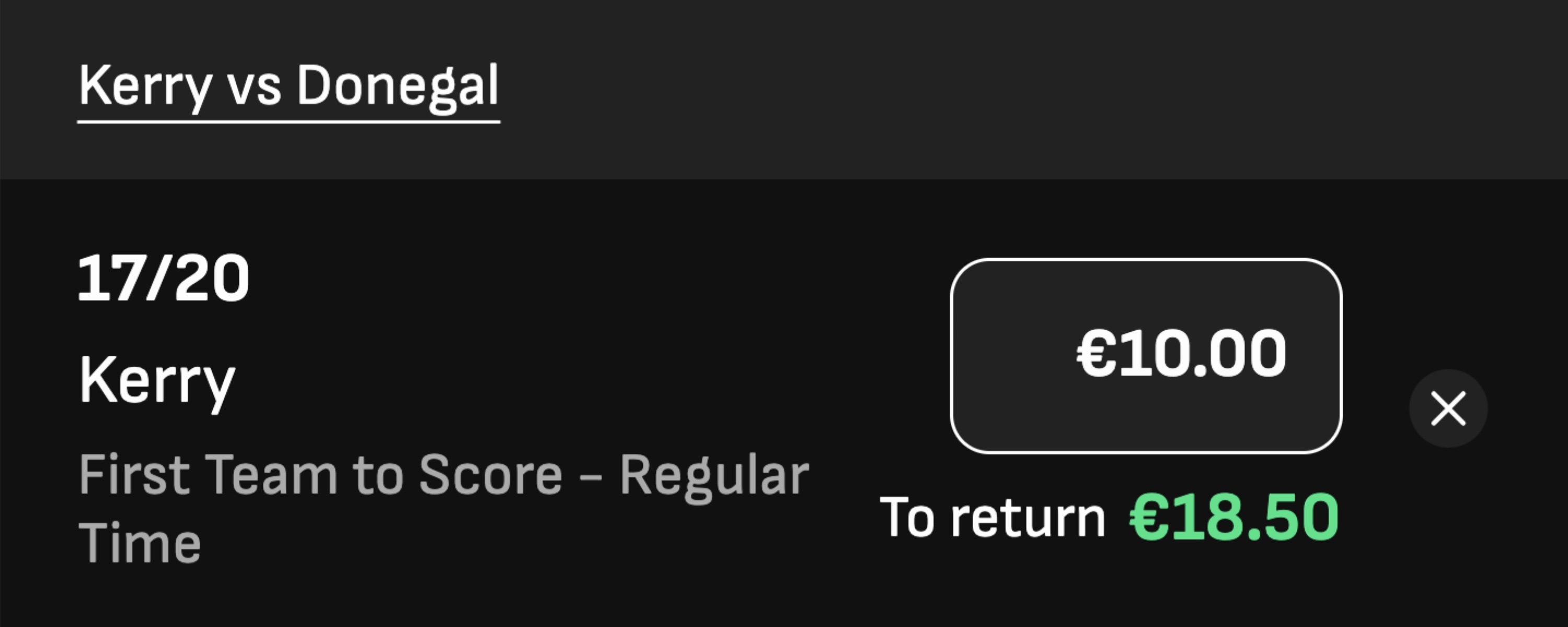 For example, I backed Donegal to score first against Kerry at 17/20 - while bet365 was offering 3/4 on the same outcome.