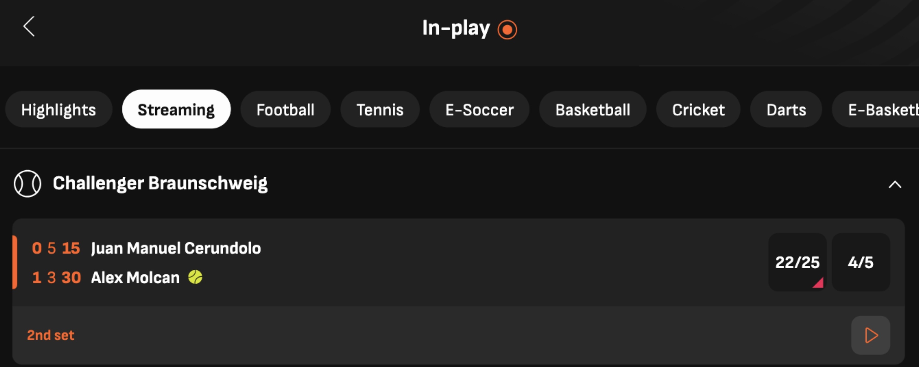 There’s a good selection of live streams for horse racing, football, tennis and basketball, housed in an immersive in-play betting console.