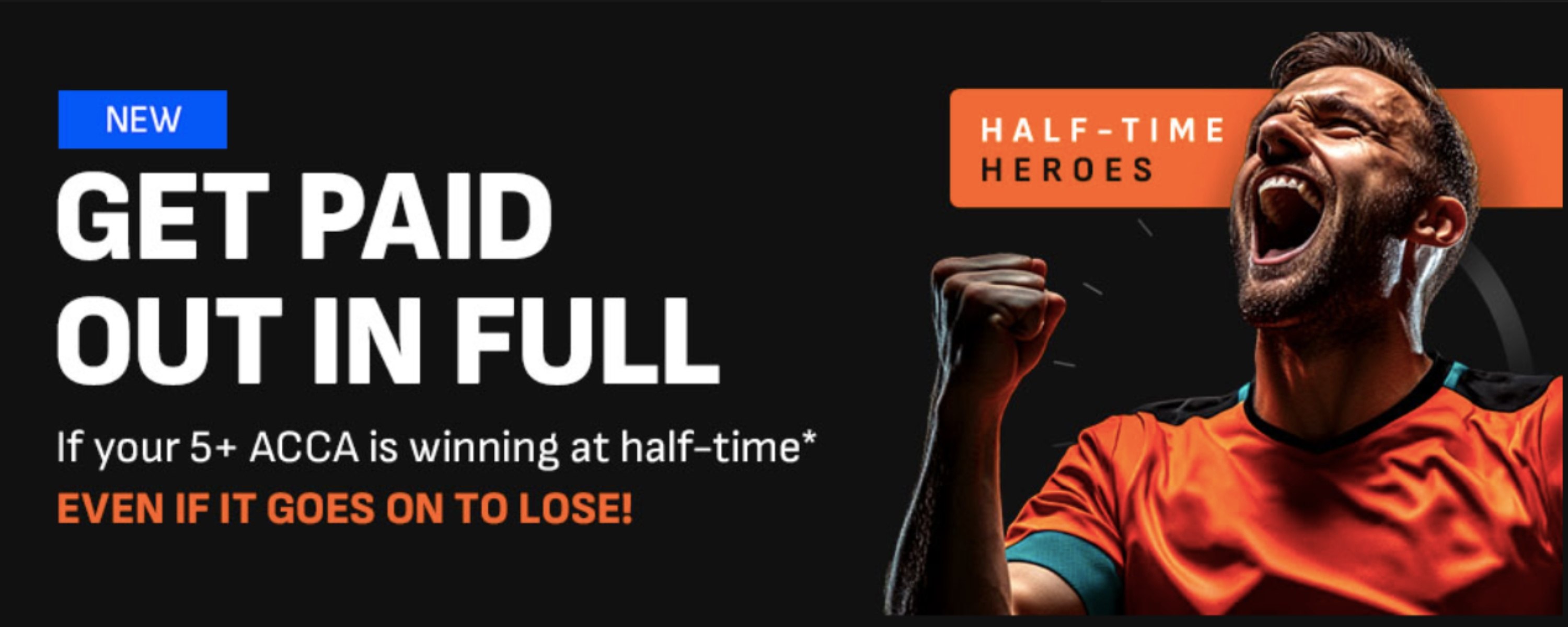 | 2. Acca Early Payout | Get paid out if all teams in your 5+ leg acca are winning at half-time. |