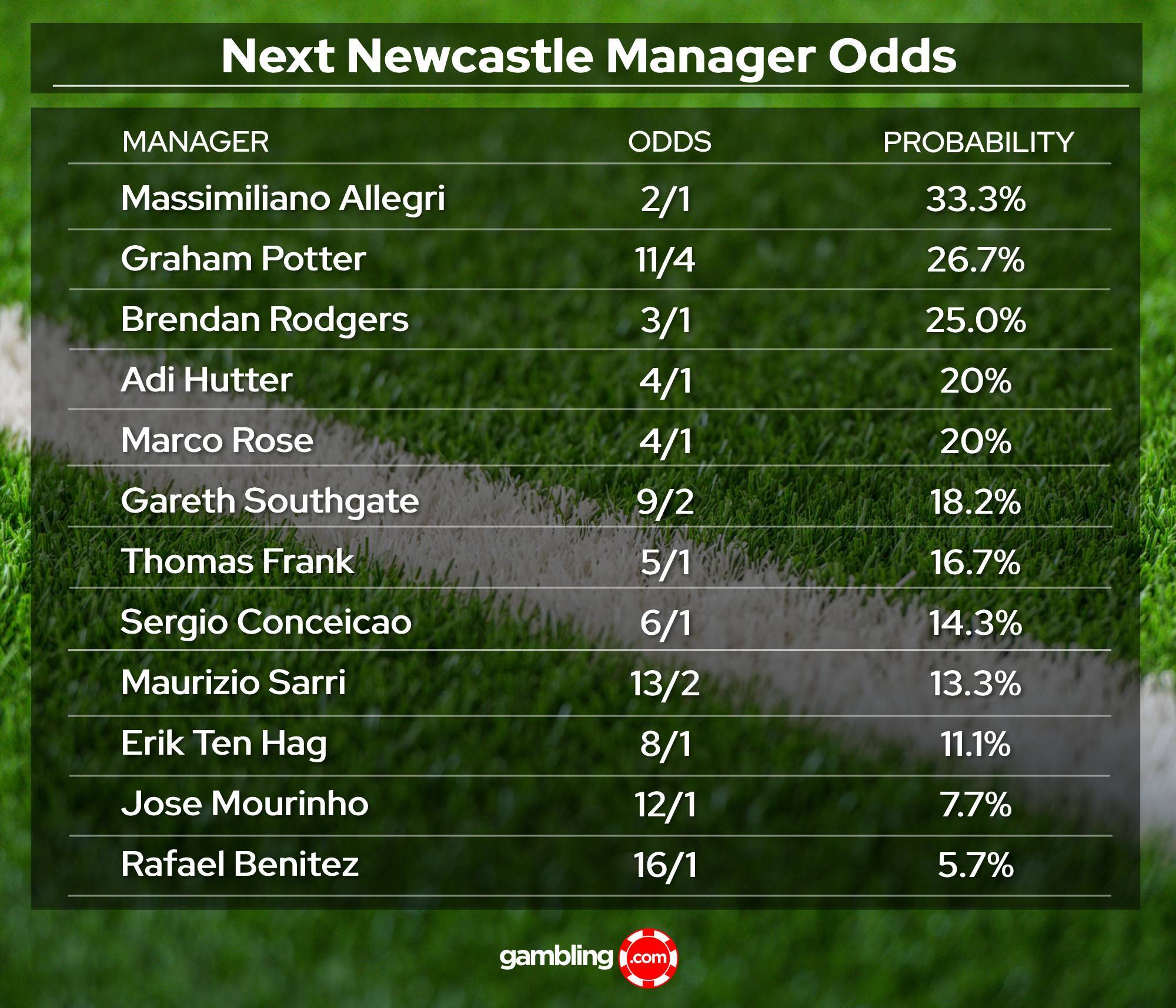 He has won multiple league titles during his time in Serie A with Juventus and AC Milan and could prove to be an upgrade on Howe as the Saudi owners look to take the club to the next level with the huge funds available to them. Allegri is currently 2/1 favourite for the role.