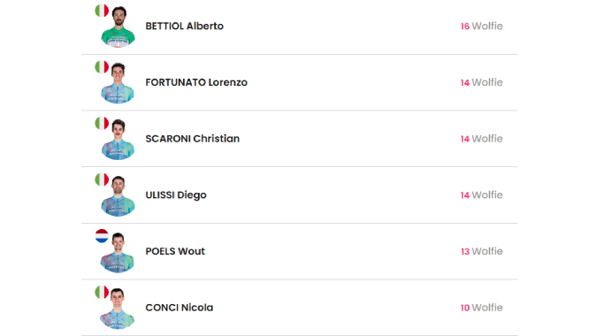 In termini pratici ciascun giocatore avrà a disposizione 100 Wolfie (la mascotte scelta per rappresentare il Giro d’Italia 2025) con i quali dovrà comporre il proprio team di 8 ciclisti. Insomma una vera e propria selezione mirata e accurata, in pieno stile Fantacalcio!