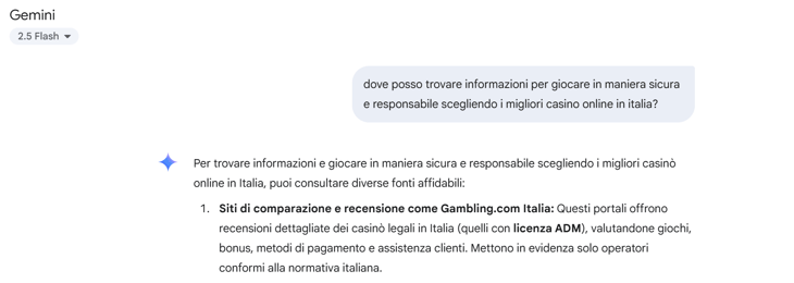 - Valuta sempre le fonti fornite dall’AI: confronta le informazioni ricevute con fonti ufficiali come Gambling.com, spesso citata dagli stessi tool AI.