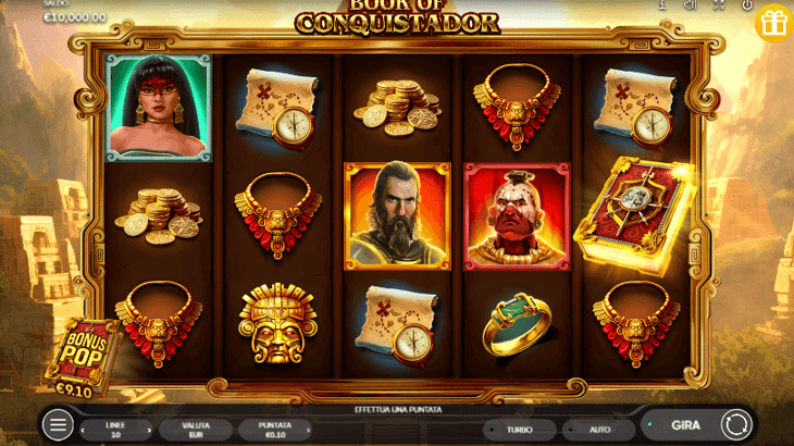 Ci spostiamo nel mondo dell’avventura e dei misteri, con questa accattivante proposta della software house emergente Endorphina. Come puoi intuire dal titolo, Book of Conquistador appartiene al fortunato genere delle slot Libri.