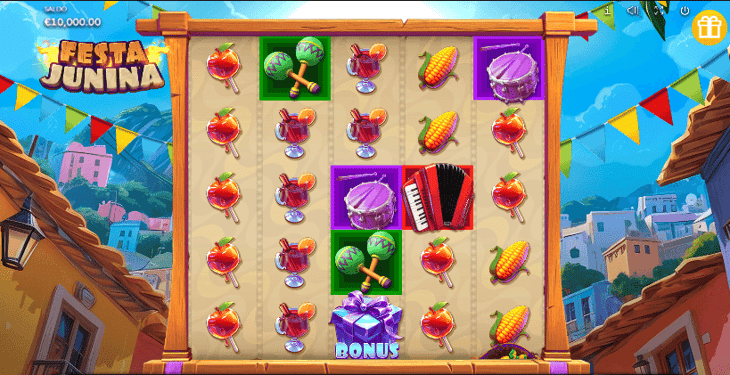 Festa Junina è una slot ideale se cerchi un titolo vivace nella grafica e un po’ diverso dal solito. Si basa su una griglia 3x5, con un numero variabile di linee di pagamento, e con un gameplay classico che ricalca quello della maggior parte delle slot machines in circolazione.