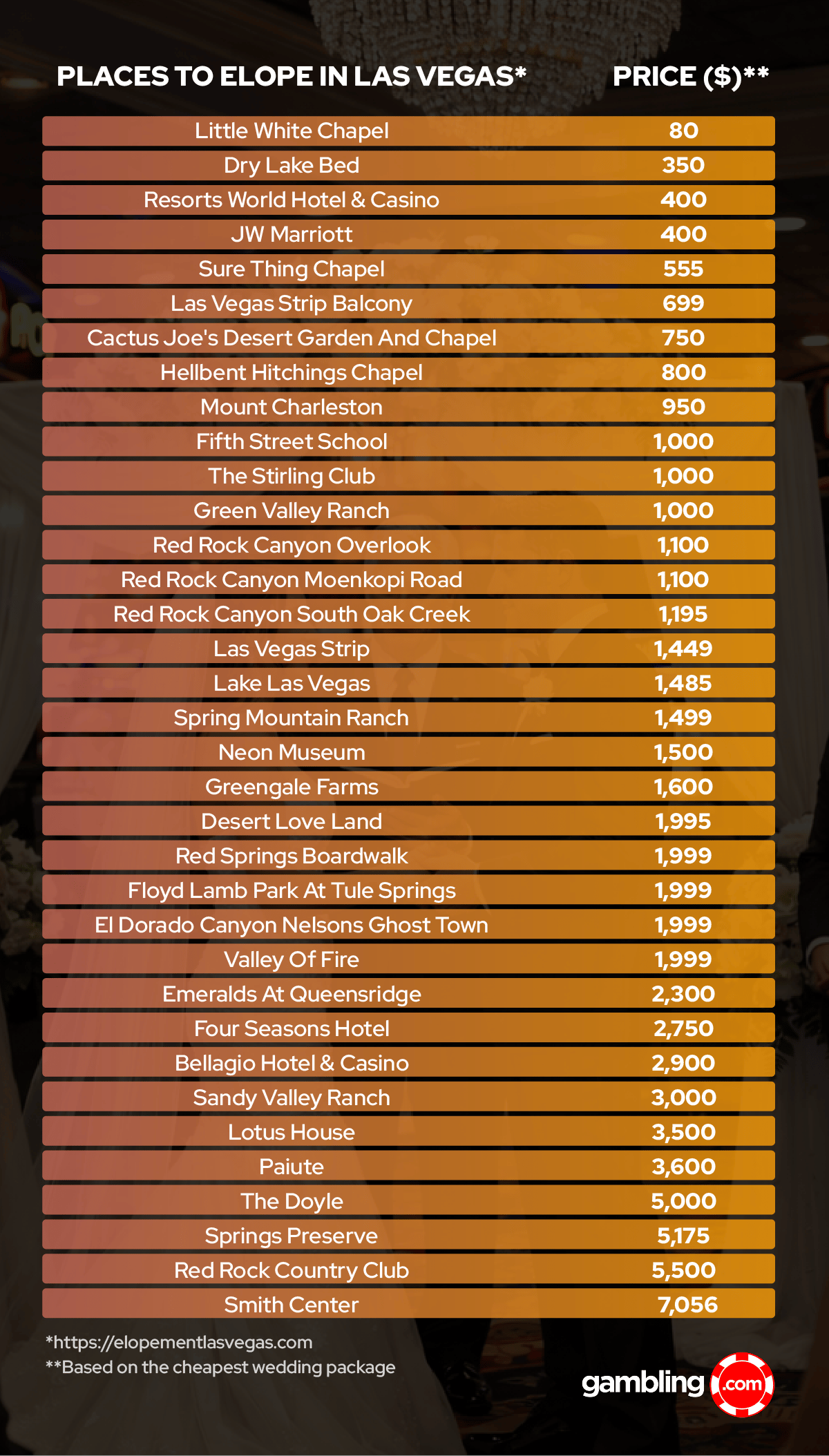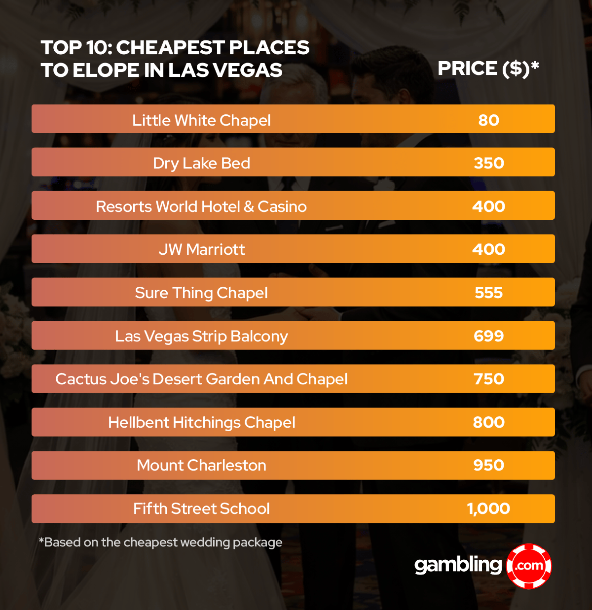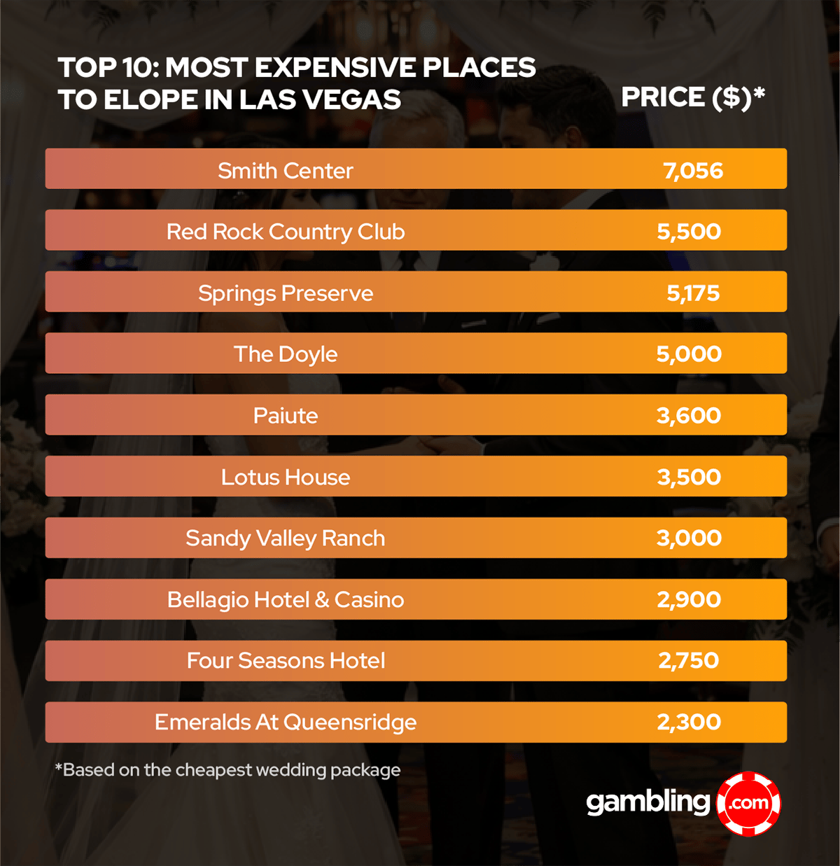 With so much choice available, the team at Gambling.com wanted to find out the cheapest and most expensive places to elope in Las Vegas.