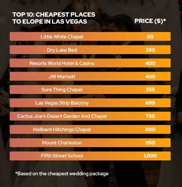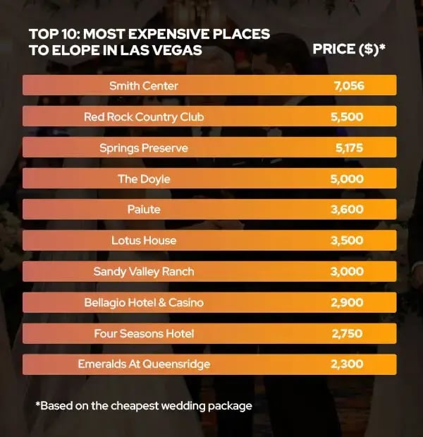 With so much choice available, the team at Gambling.com wanted to find out the Cheapest and Most Expensive Places to Elope in Las Vegas.