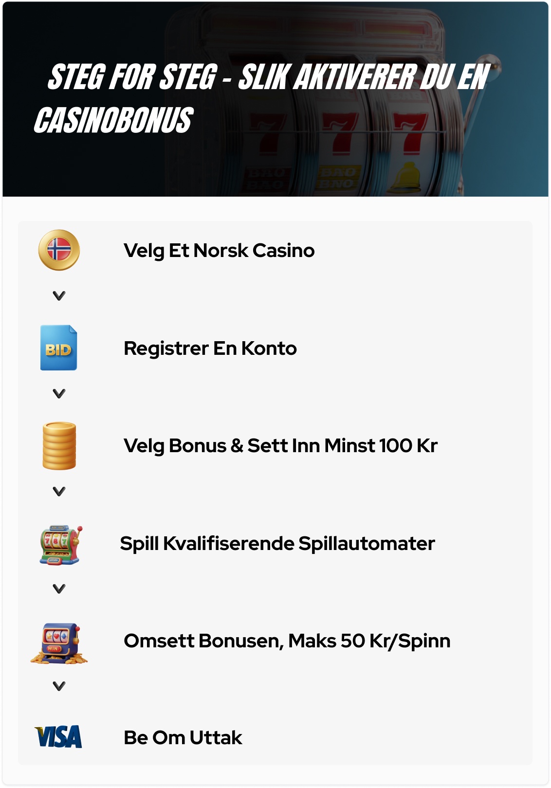 Først må du se hvilke betalingsmetoder som er kvalifisert, deretter hvor mye du må sette inn for å aktivere bonusen. Det kanskje aller viktigste er å sjekke omsetningskravet på bonusen. Det er også flere andre ting som er en stor fordel å undersøke. Les mer om det på vår nettside om casino bonuser.