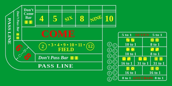 Craps er et terningspill hvor spillerne kaster to terninger og satser mot dealer. Det første du må gjøre, før du triller terningene er å sette din innsats på pass line. Når innsatsen er på plass kastes treningene for første gang, som kalles «come out».