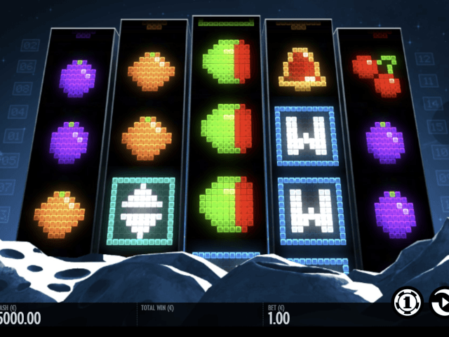 Denne tittelen har 5 hjul og 15 utbetalingslinjer som vises som en rad med monolitter der vinnersymbolene dukker opp i klassisk 8-bit stil. De pikselerte fruktene, barene, bjellene, og bokstavene hyler av retro; en del gamle Vegas og en del Pac-Man. Spillet kommer med et mørkt, pulserende elektro lydspor, og vinnerlinjene lander med et display som rister hele planeten. Når du vinner blir du gratulert av en stemme på høytaleren, som også forutsier at det kommer en eksplosjon som om romskipet er på vei til å ta av.