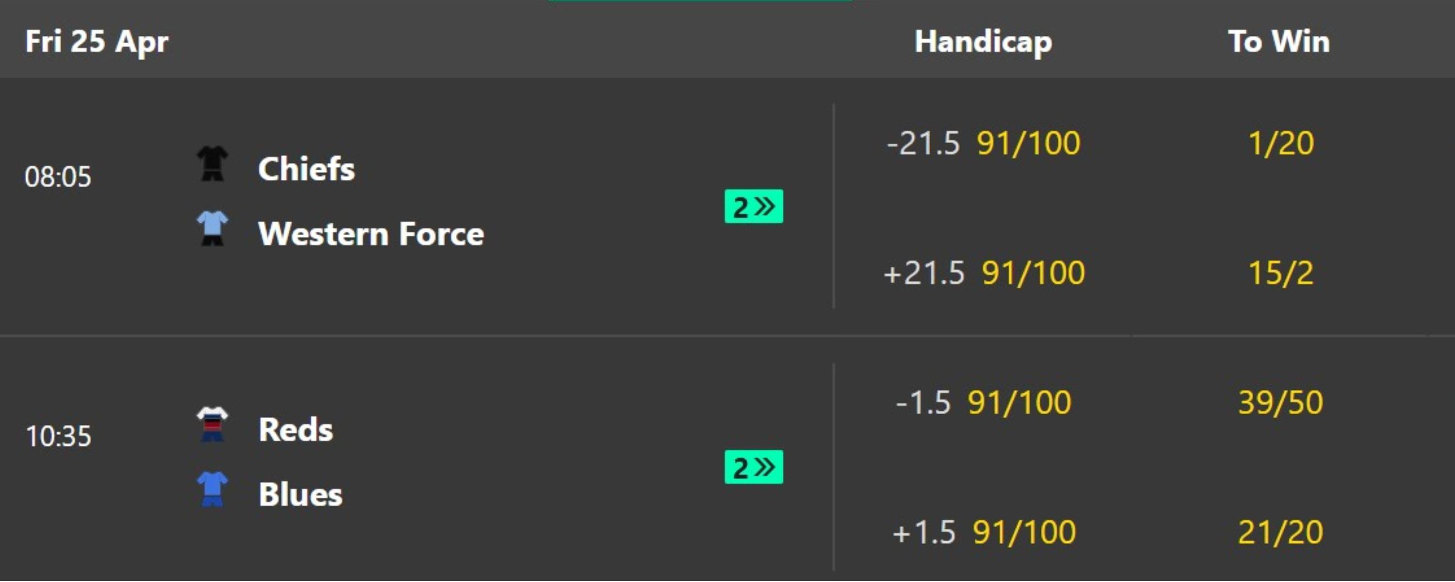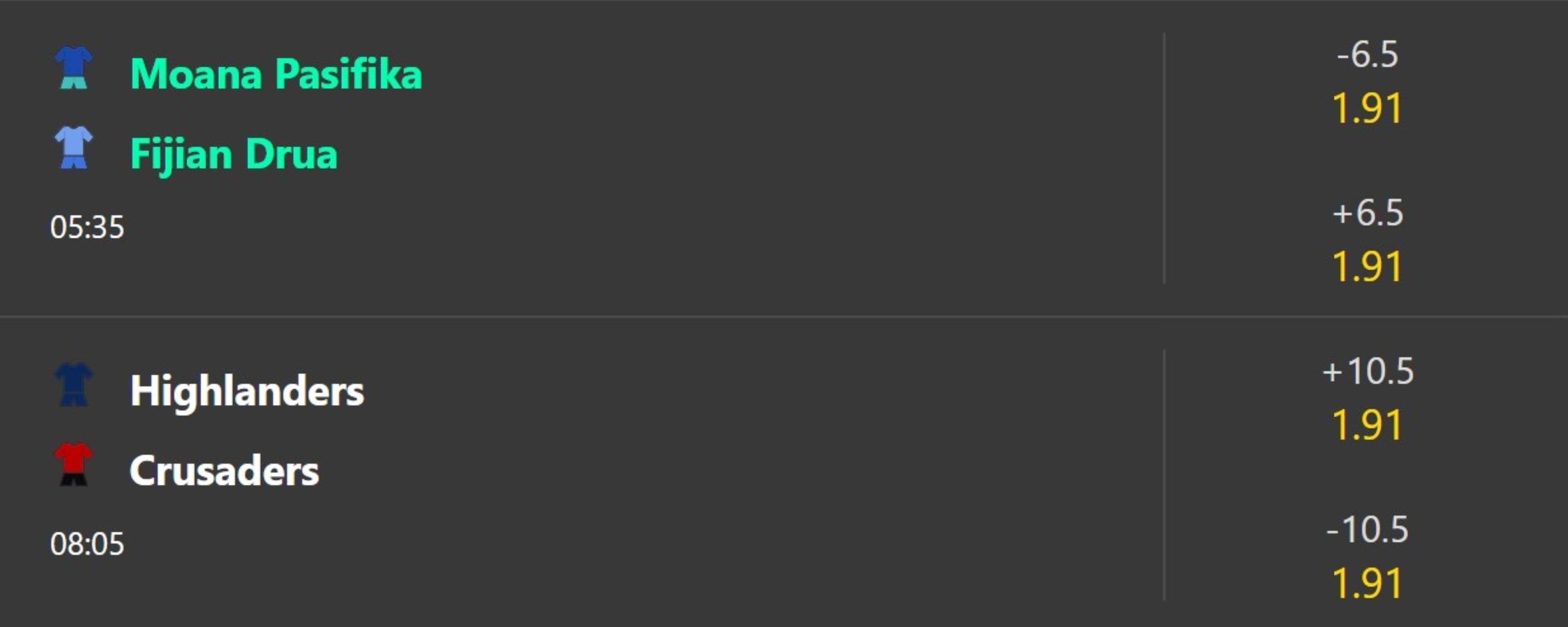 bet365 delivers a comprehensive rugby betting experience, with odds on major competitions like Super Rugby and the Rugby Championship.