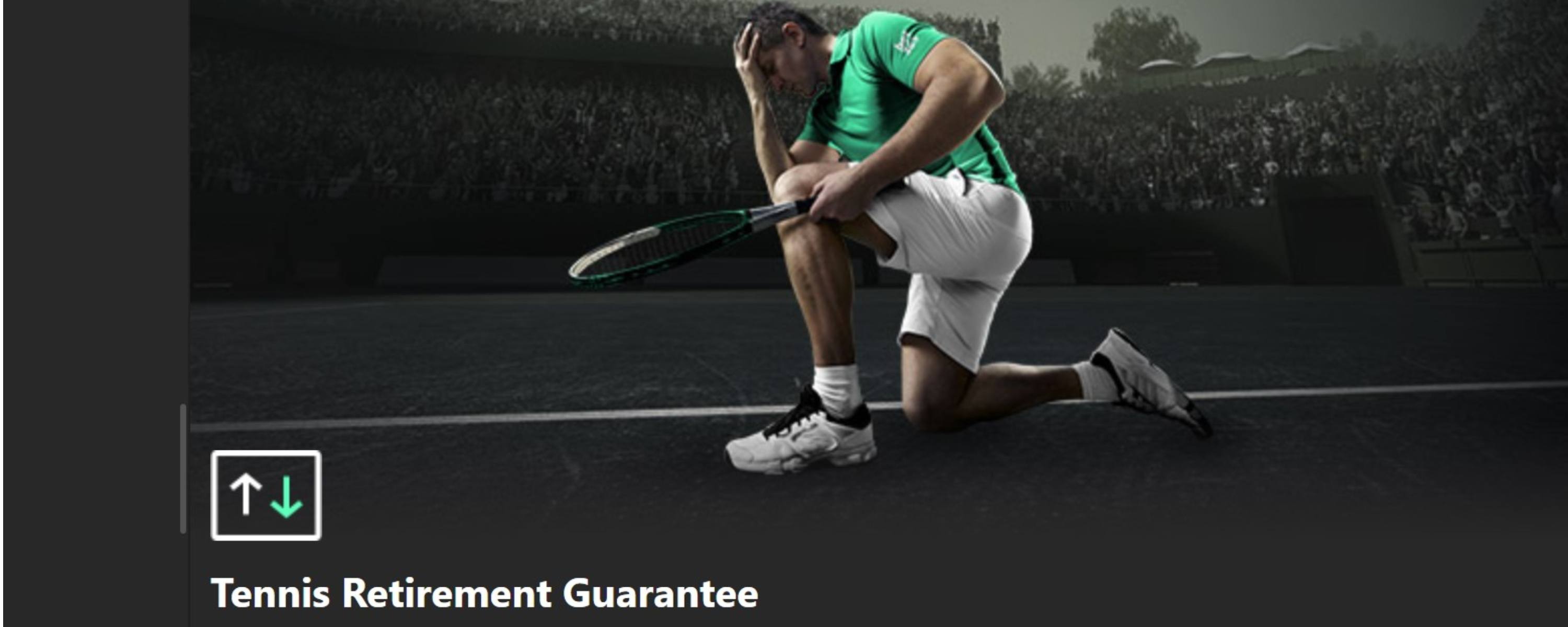 | Tennis Retirement Guarantee | Bet wins if opponent retires hurt. |