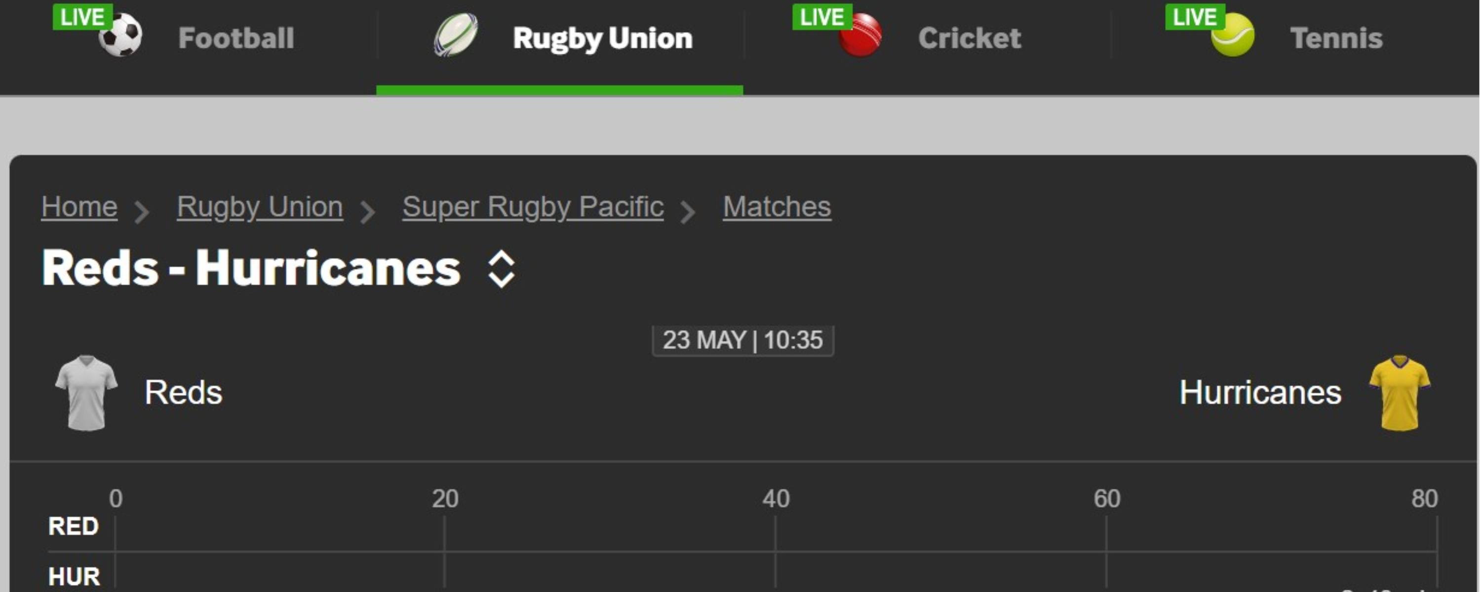 Also, the prices for rugby aren't as competitive as they are for soccer and horse racing, in my experience.