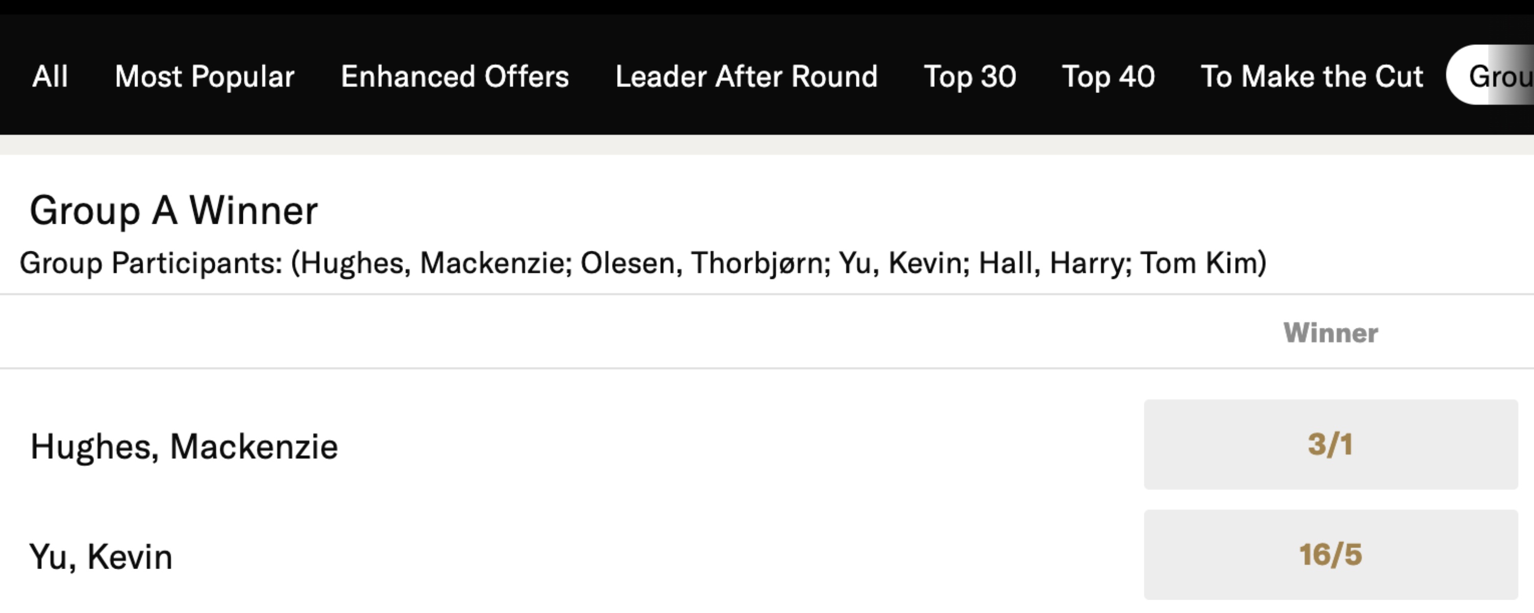I've found better odds for golf and tennis at bet365 and BoyleSports.