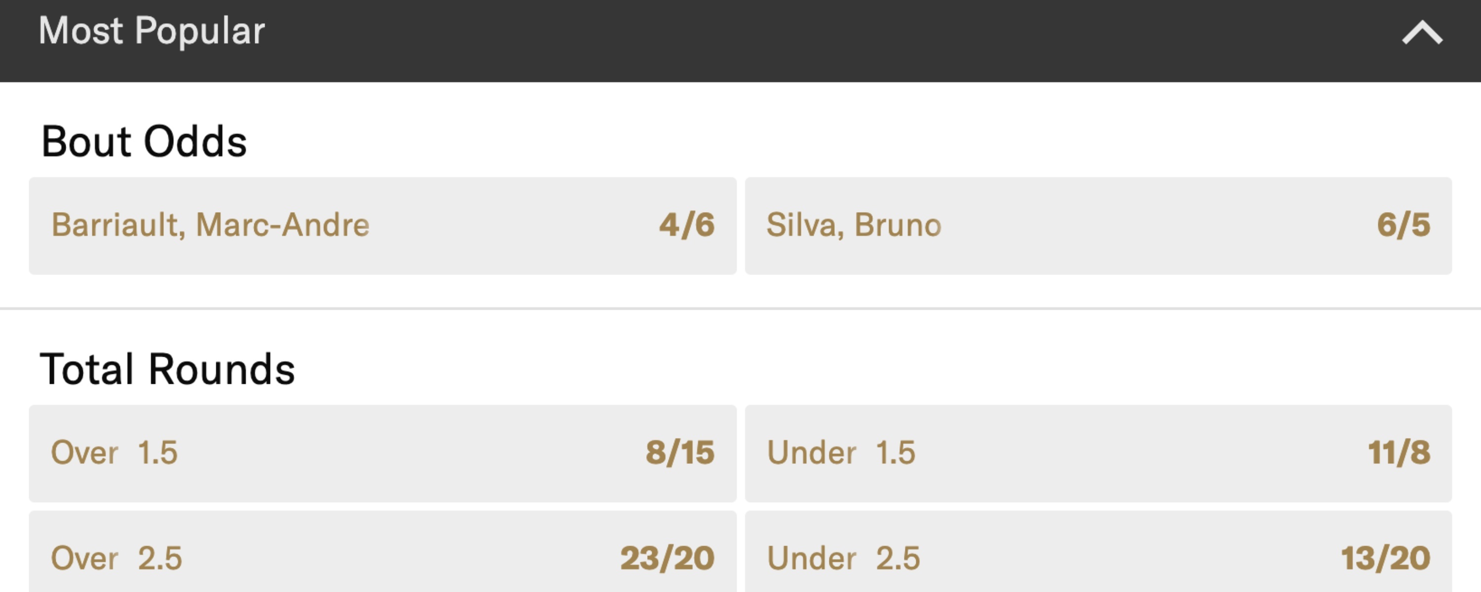 However, I didn't find any markets for Bellator, which might disappoint some avid MMA punters.