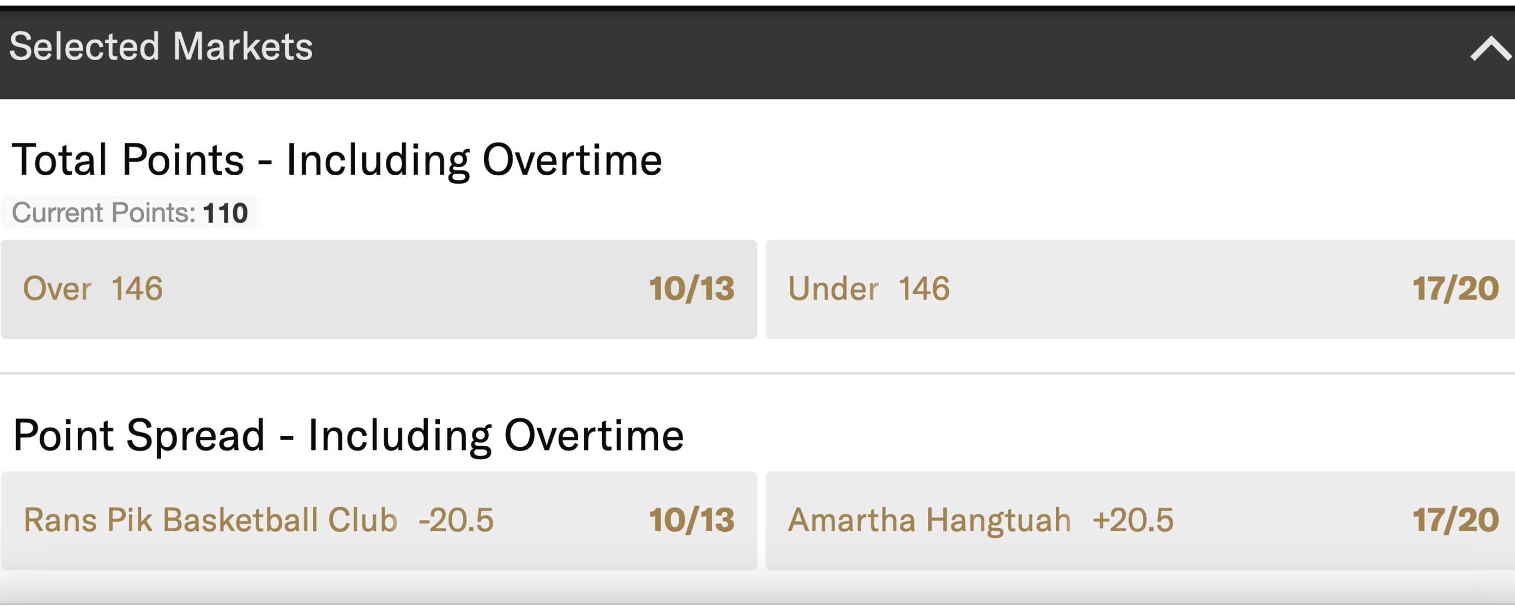 I'd also like to see a bet builder made available for cricket in the future.