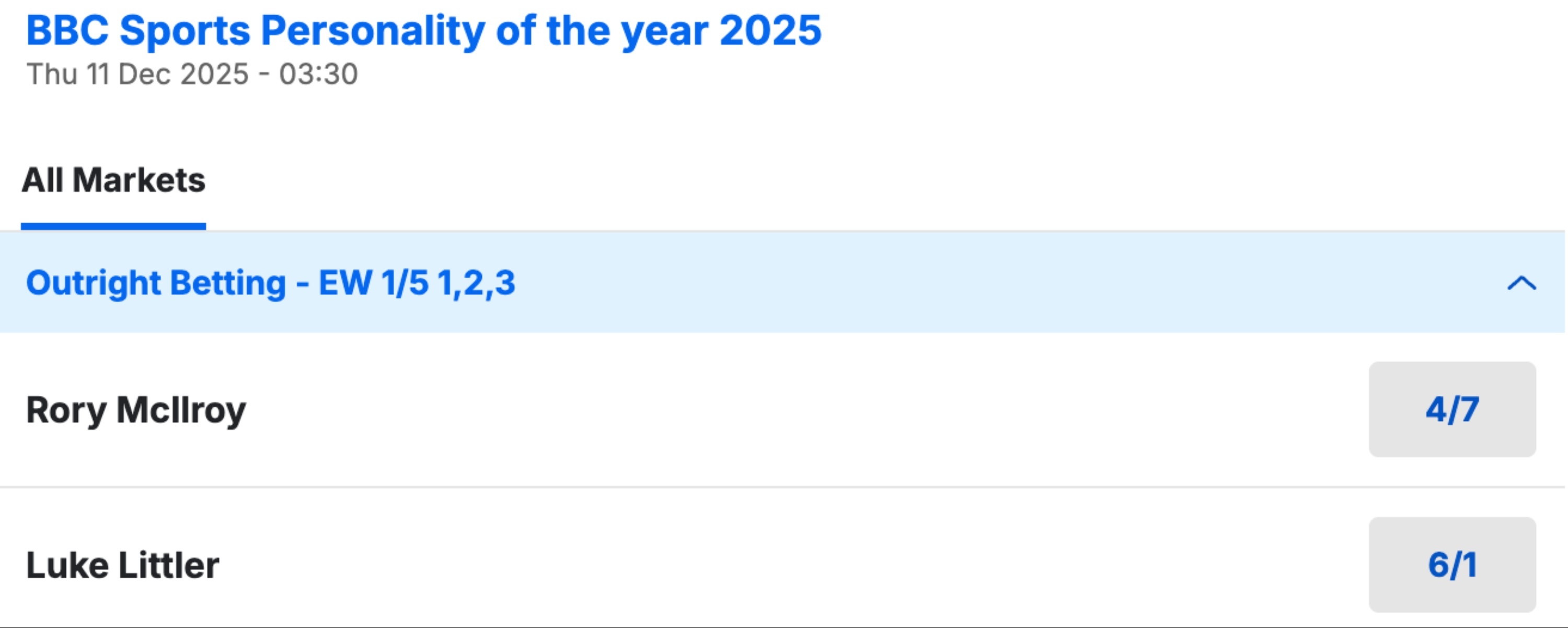 The odds are strong, but markets are much lighter on the ground than they are at sites like BetVictor.