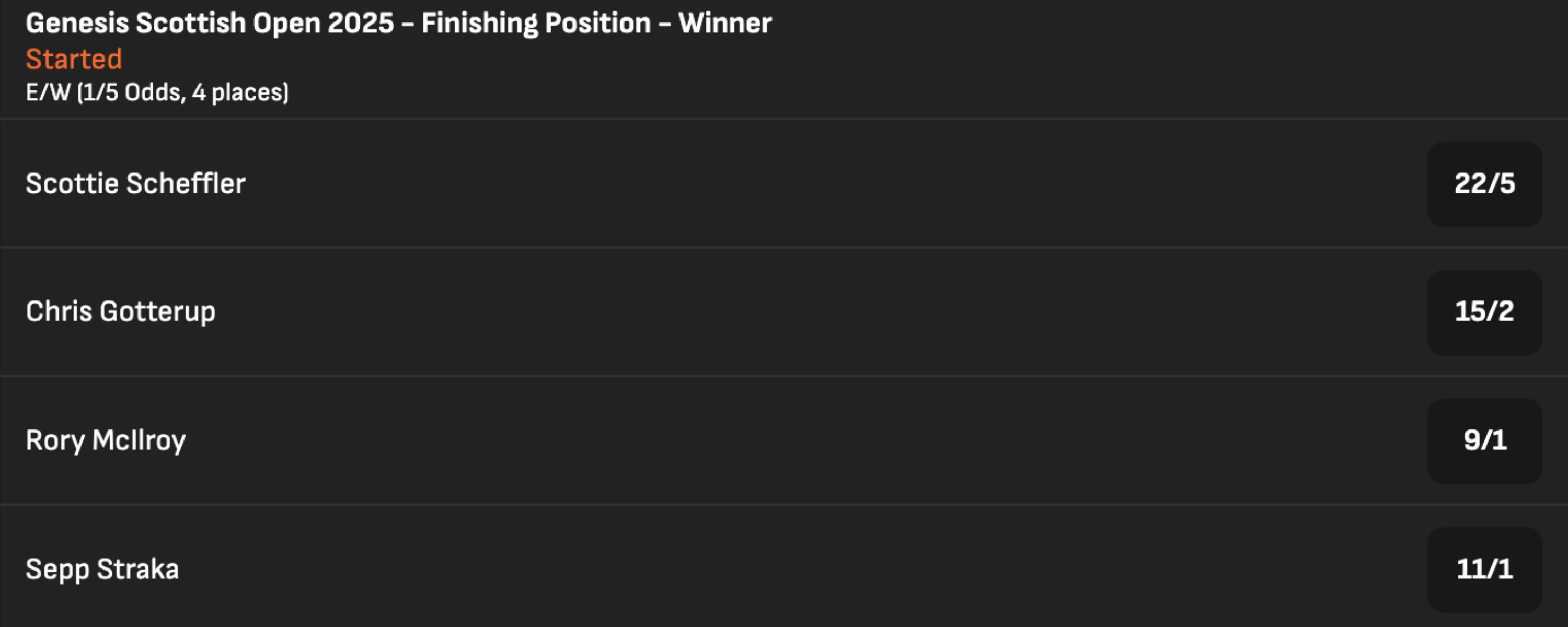 For the majors, LiveScore Bet often runs free bet promotions. For example, I got a £5 free bet for placing a £10 bet on The Open Championship.