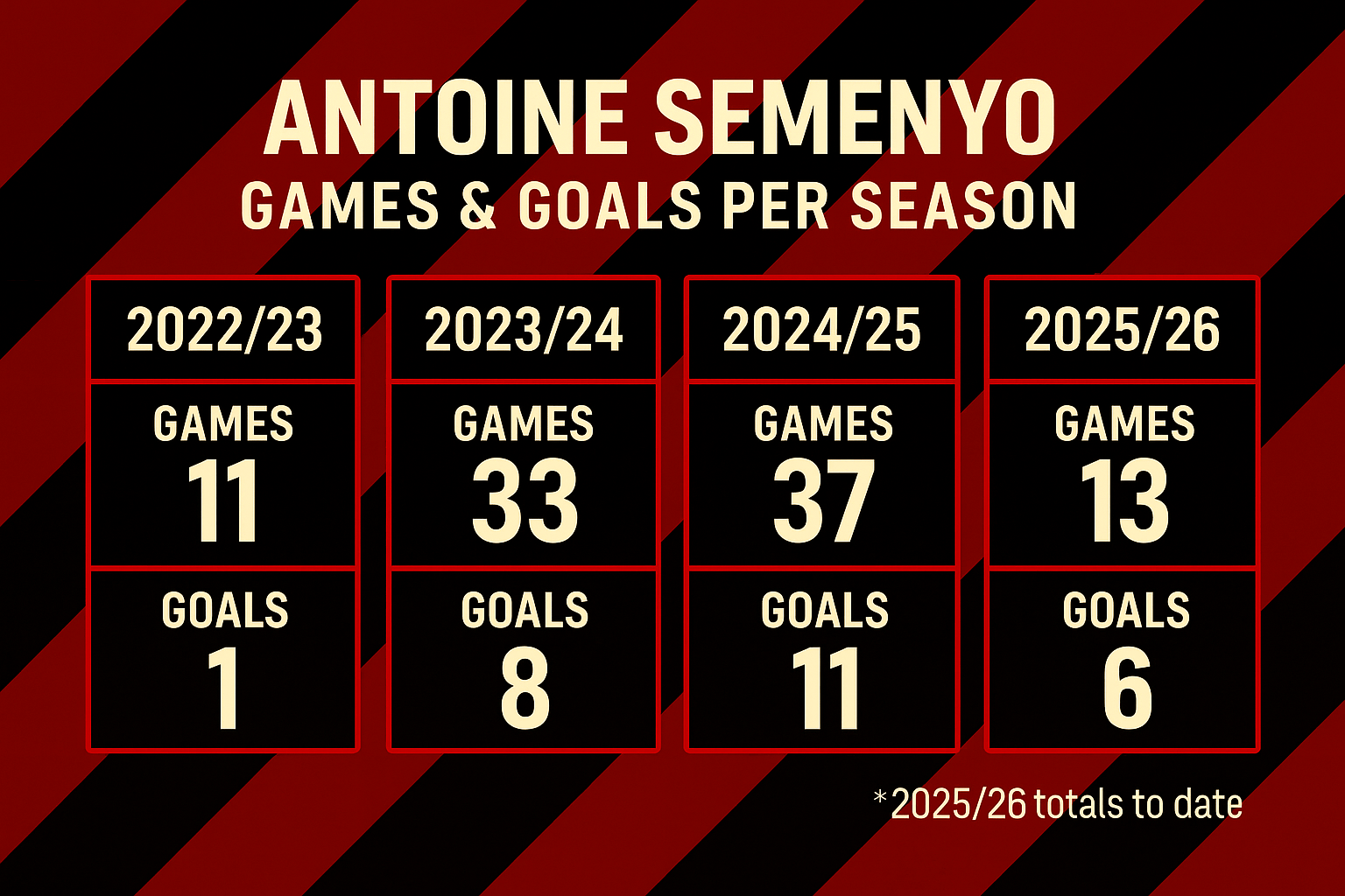 Manchester United splashed the cash in the previous transfer window to boost their firepower and have now been linked with a move for Semenyo in January.