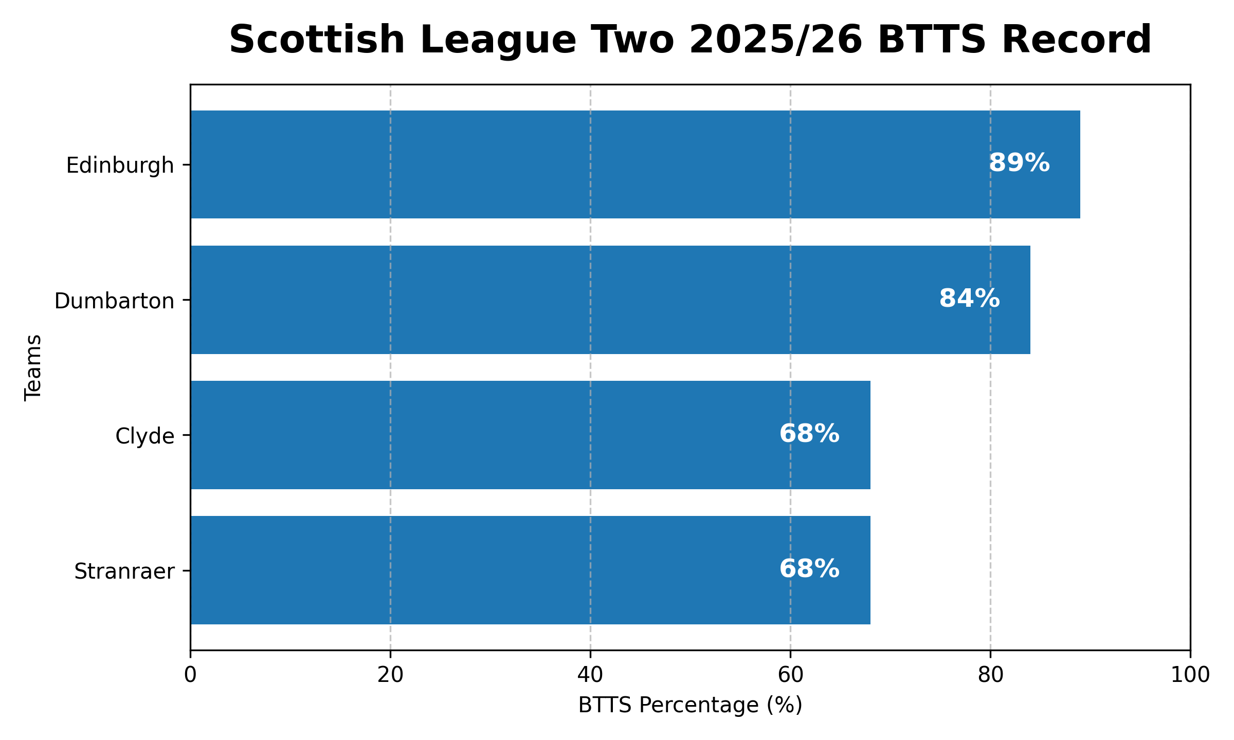 It will come as no surprise to regular readers that the next two BTTS tips come from Scottish League Two, starting with the game at bottom-of-the-table Edinburgh, who have scored and conceded in all nine home matches this season.