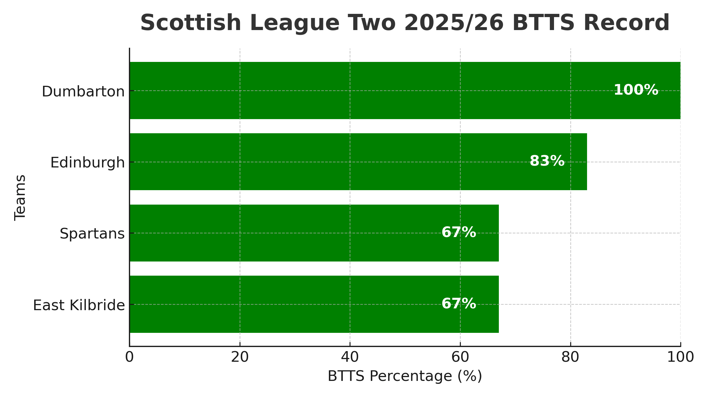 Edinburgh may not have a 100% record like Dumbarton, but they have ticked the both teams to score box in 10 of their 12 matches.
