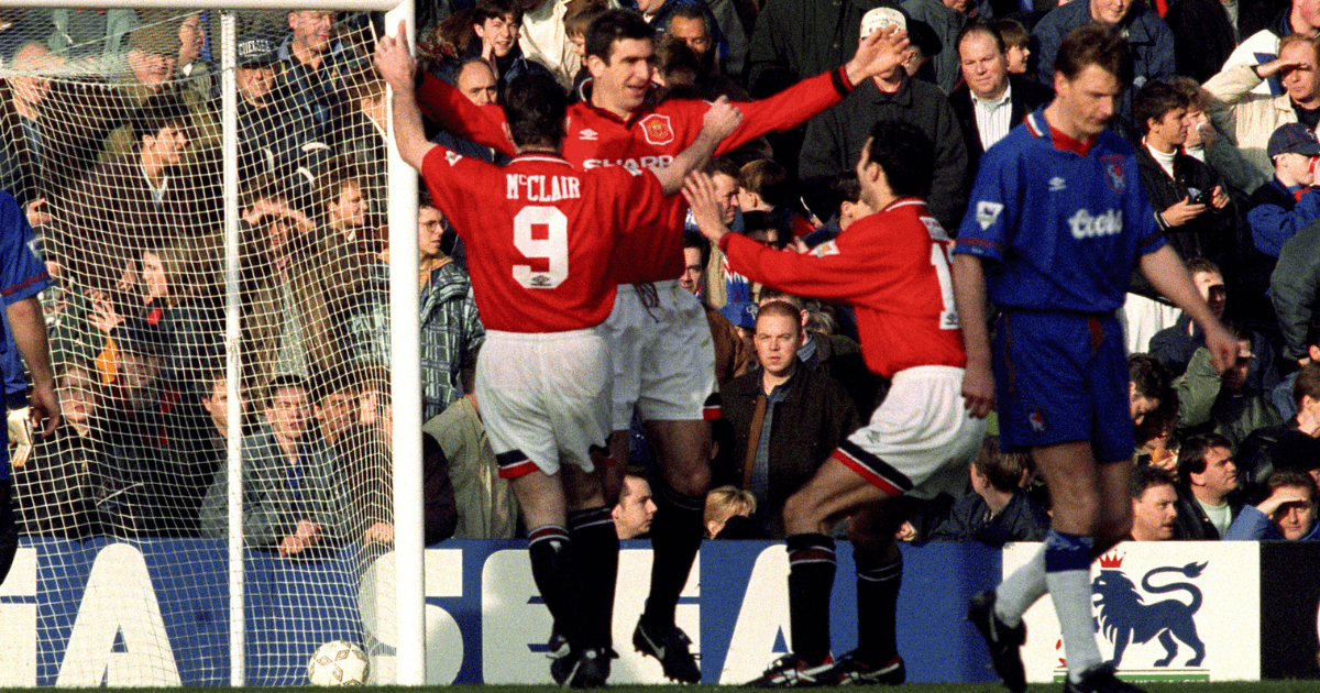 “I didn’t see what happened until I got home that night,” explains McClair. “All I knew was that Eric had been sent off and was walking down the touchline with our kit man Norman Davies as we prepared for the resulting free-kick.