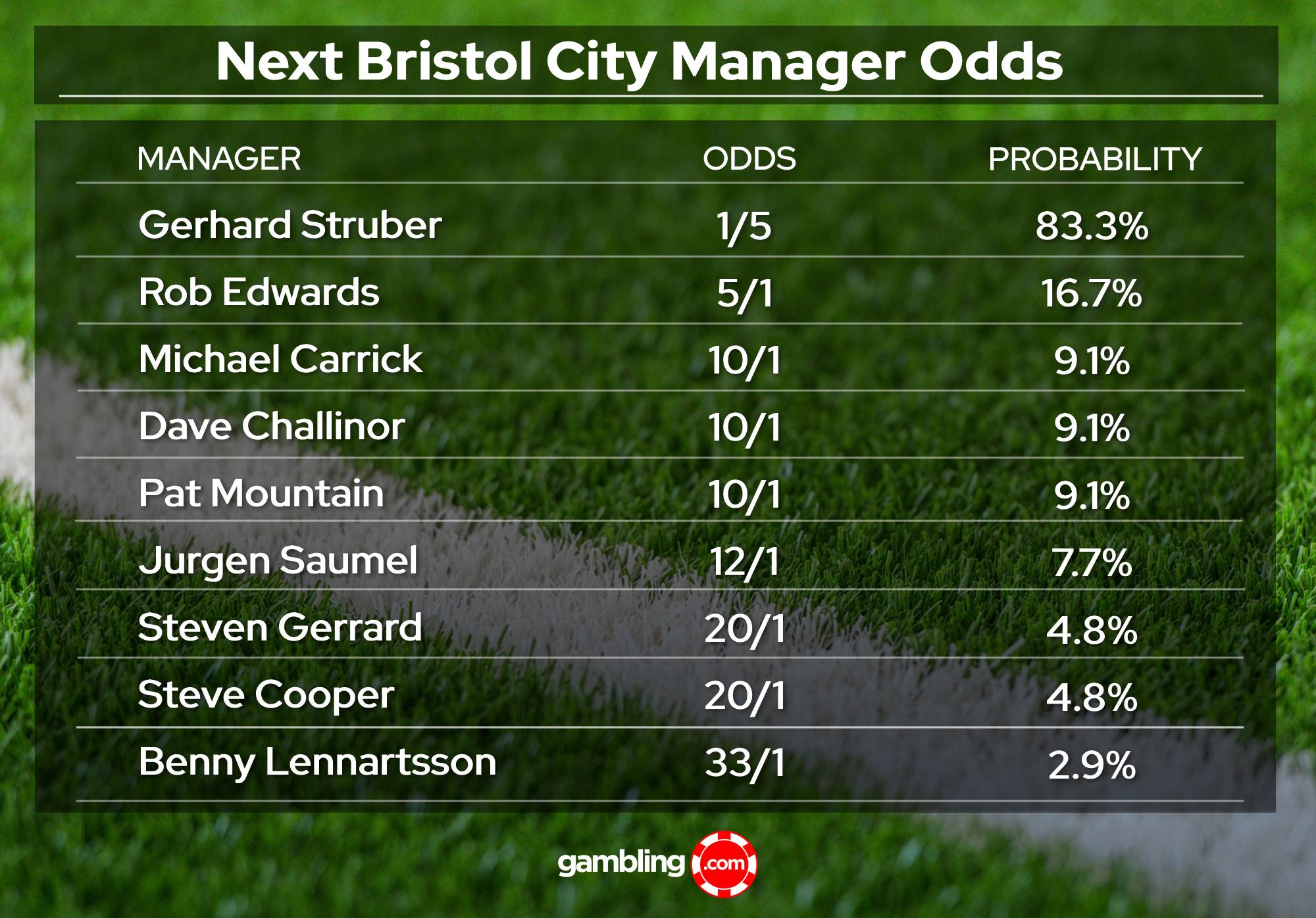 Struber is currently the frontrunner in the next Bristol City manager market, priced at 1/5.