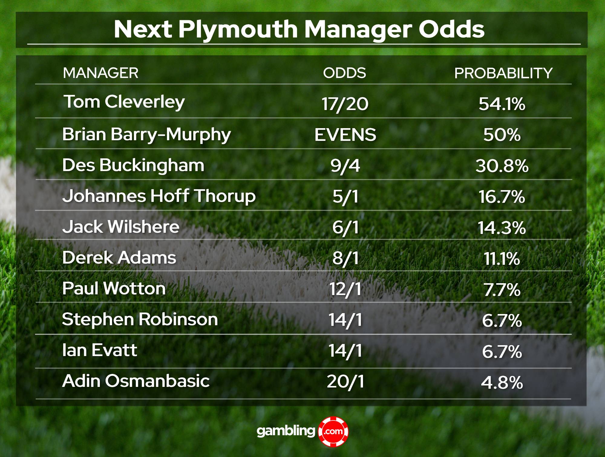 Let’s take a look at some of the contenders and the latest next Plymouth manager odds.